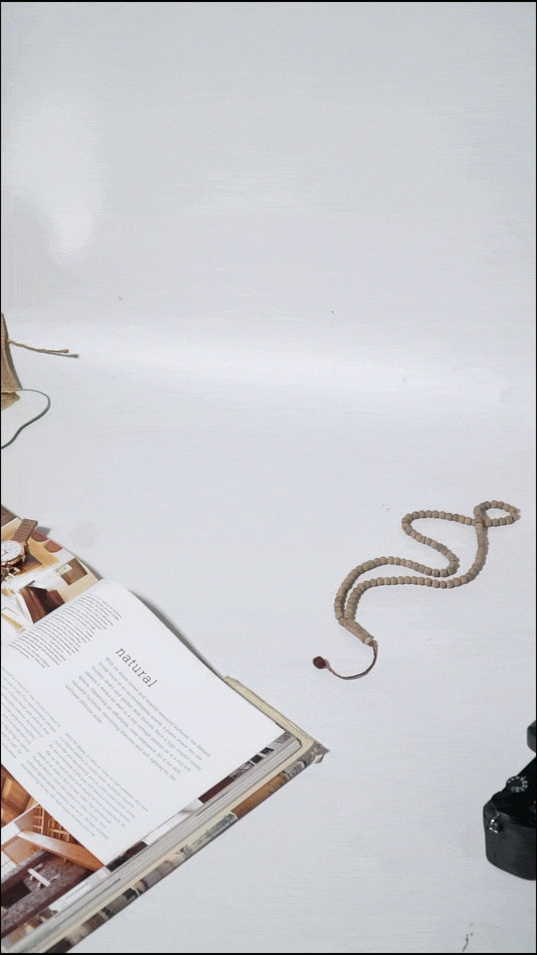 Produk ditempatkan sejajar depan kamera, dengan menggunakan properti yang mendukung untuk menaikan value produk Anda!